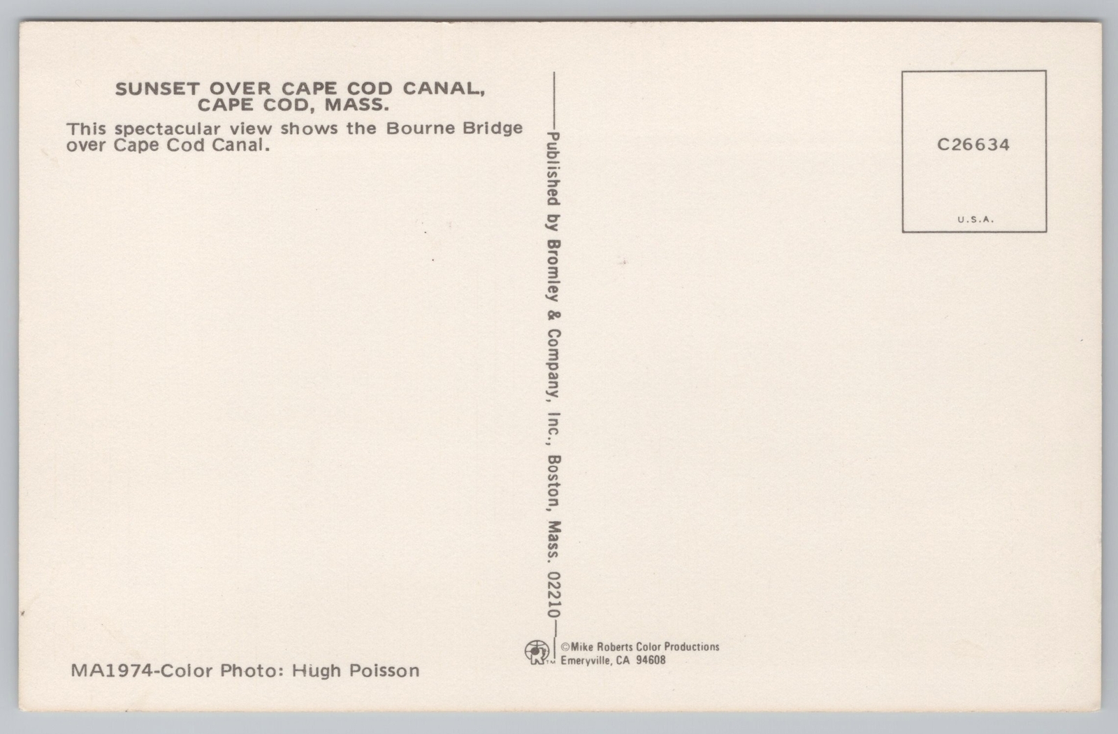 Cape Cod Massachusetts~Sunset over Cape Cod Canal~Bourne Bridge~1960s Pc