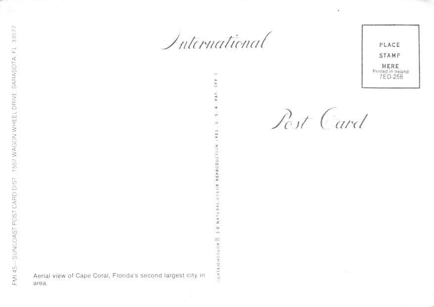 Cape Coral - Grade: 1 Category: Continental Size Postcard, Approx 4 in x 6 in (10 cm x 15.25 cm) Product Size: Continental size: 4X6 inches (10.5 cm x 15 cm) Grading Scale: Grade 1 = Perfect corners Grade 2 = V ... Read More