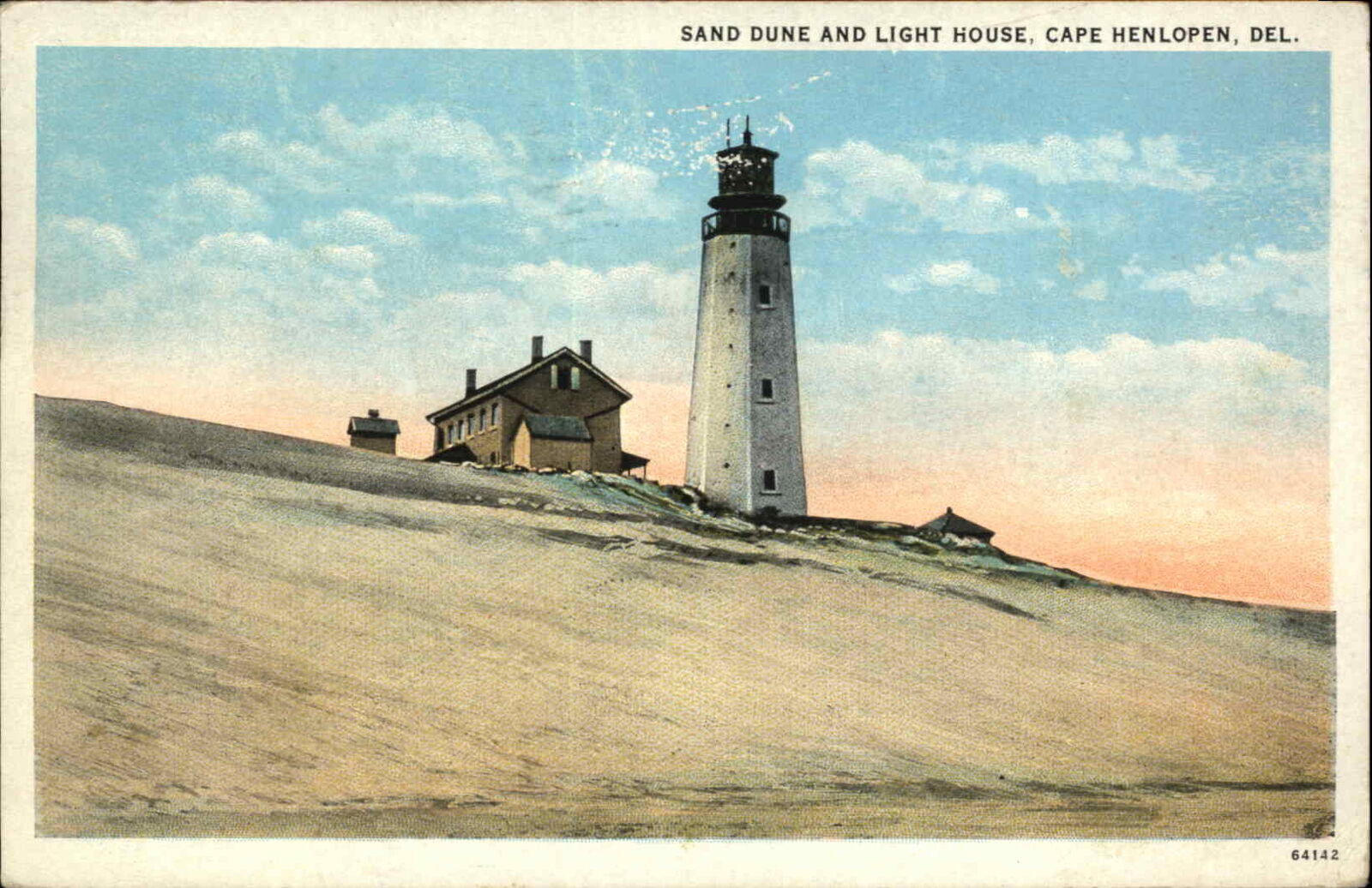 Cape Henlopen Delaware DE Sand Dune Lighthouse Vintage Postcard