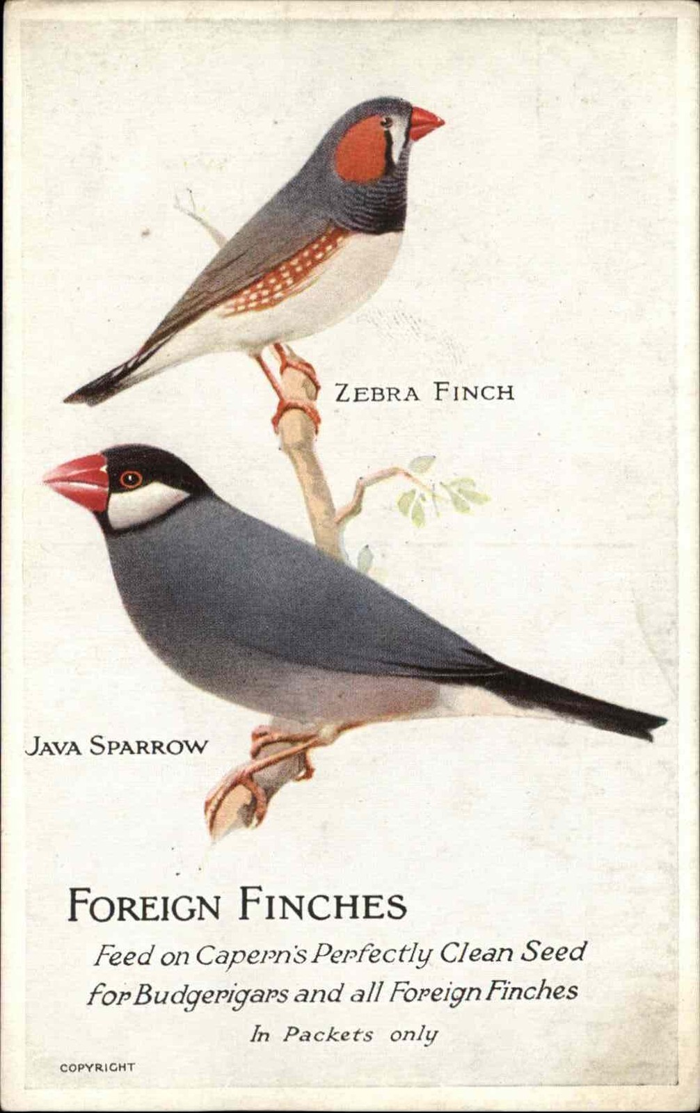 CAPERN'S BIRD SEED AD ADVERTISING Zebra Finch Java Sparrow Antique Postcard