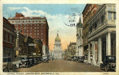 Capitol Ave. West - Springfield, Illinois IL Postcard - 1928