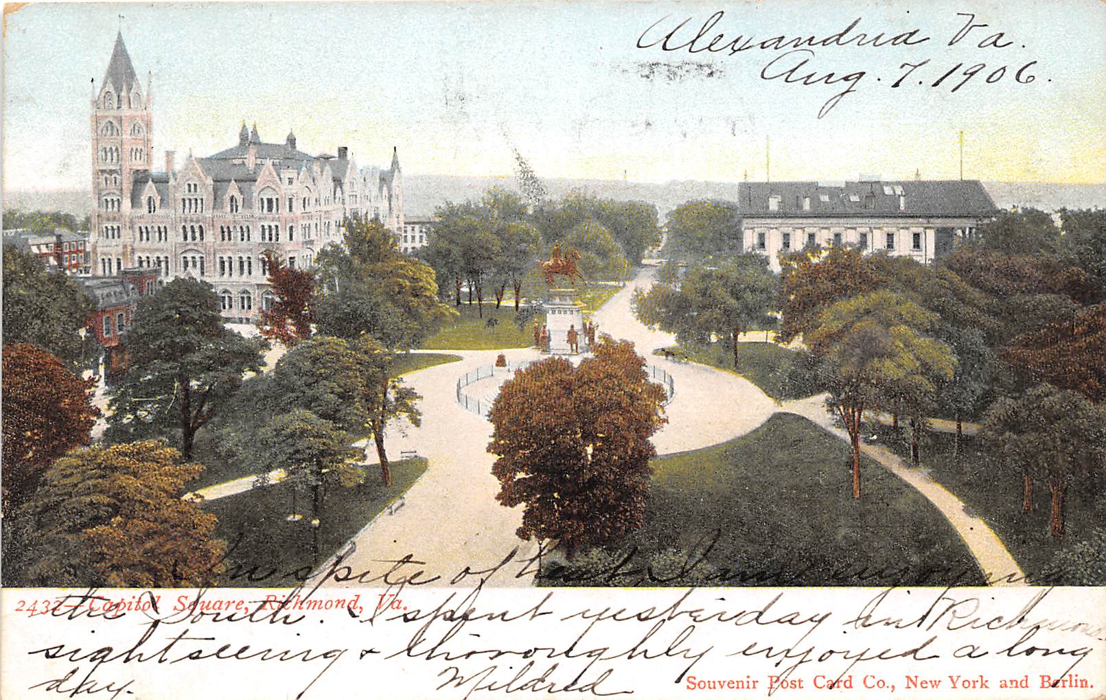 Description: Capitol Square Richmond Virginia 1906 postcard Type: undivided back postcard. Condition: very good +, light corner wear. Postal Use: used, posted Alexandria VA 1906 More postcards in the Postcar ... Read More