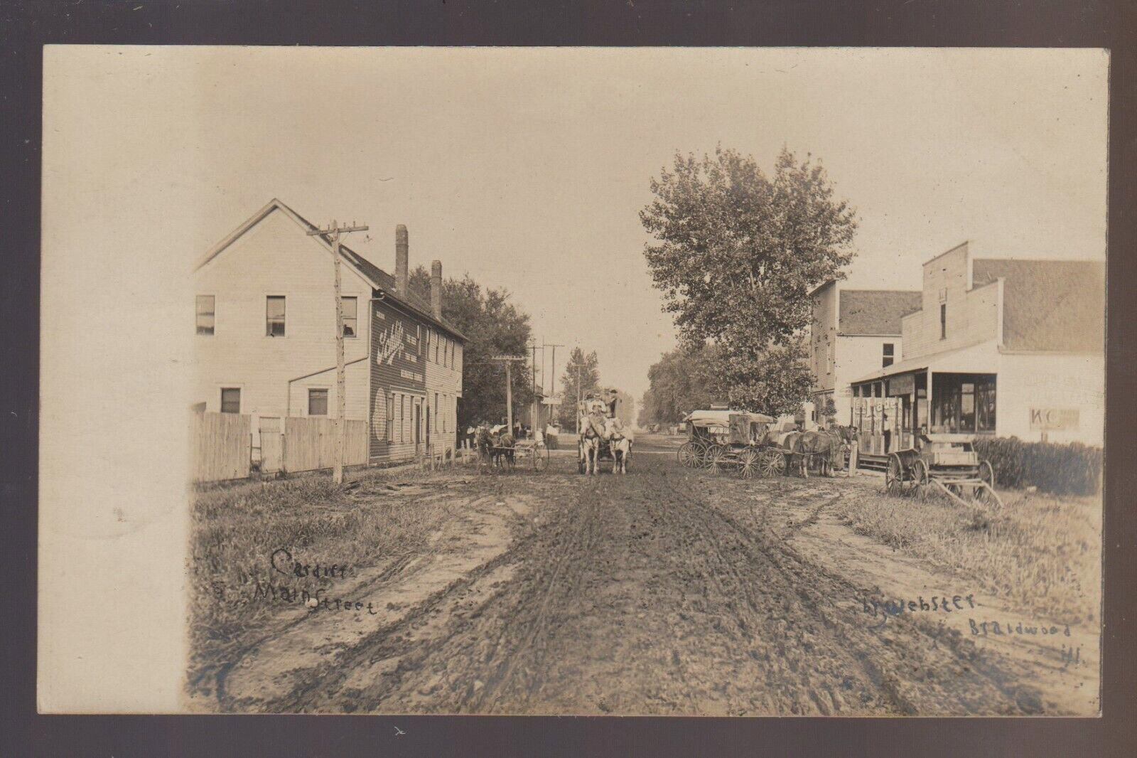 Here is a nice REAL PHOTO postcard view showing CARDIFF MAIN STREET BY WEBSTER BRAIDWOOD ILL. on the front postmarked, circa 1910..sent to Symerton Ill. A beautiful building painting ad for DRINK SCHLITZ THE BEER TH ... Read More