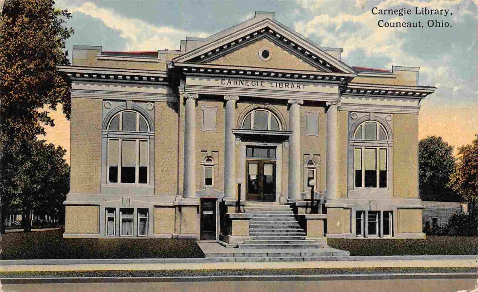 Carnegie Library Couneaut Mispelled Conneaut Ohio 1917 postcard