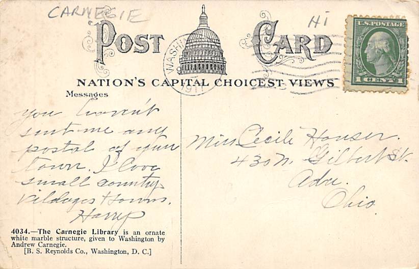 Carnegie Library Washington, Washington DC USA Postcard - View Postcard Backing