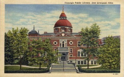 Carnegie Public Library - East Liverpool, Ohio Postcard - Unused Grade: 1 Size: R - Regular size: Approx 3 1/2 X 5 1/2 inch (9 cm X 14 cm) Grading Scale: Grade 1 = Perfect corners Grade 2 = Very Minimal corner ... Read More