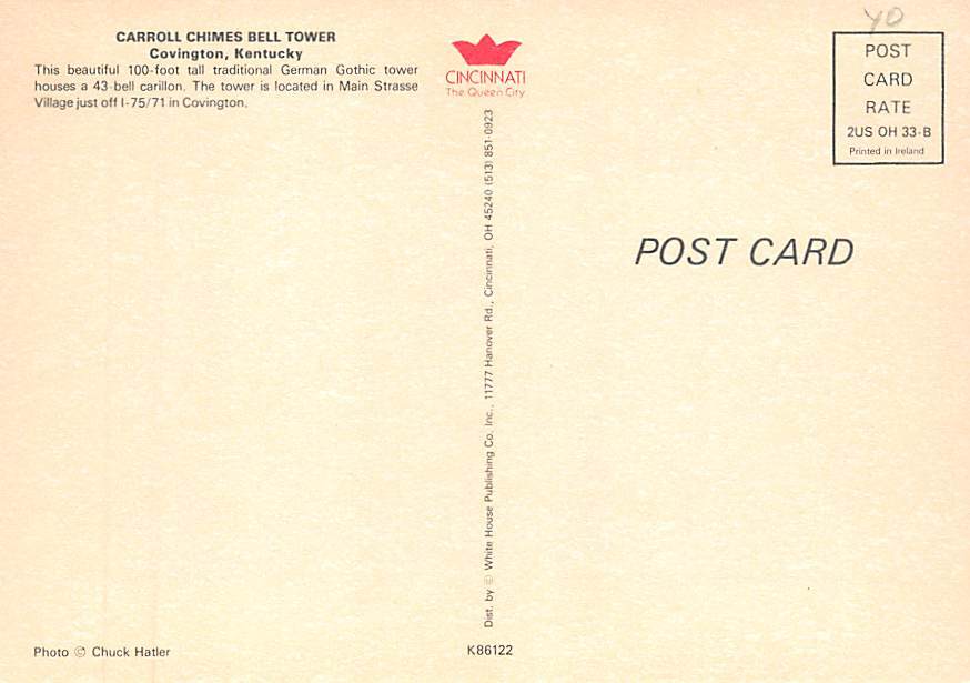 Carroll Chimes Bell Tower , Covington Kentucky Postcard - View Images