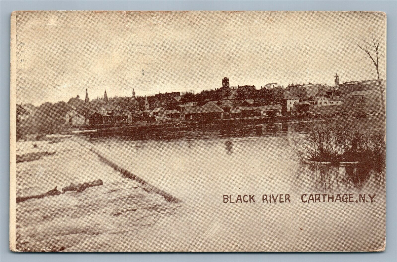 CARTHAGE NY BLACK RIVER 1917 ANTIQUE POSTCARD