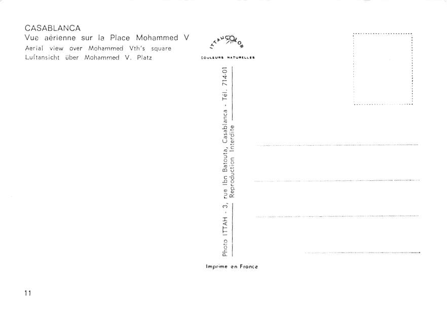 Casablanca - Place Mohammed V Continental Size Postcard, Approx 4 in x 6 in (10 cm x 15.25 cm) Continental Size: 4X6 inches (10.5 cm x 15 cm)