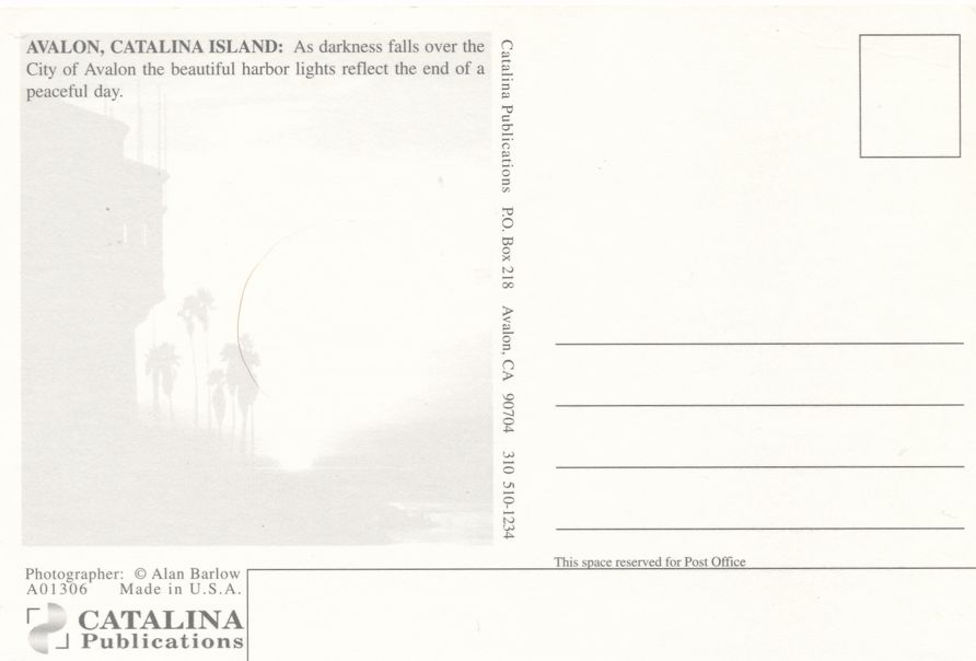 Catalina Island, California - Evening View. Continental sized chrome card. Excellent condition.