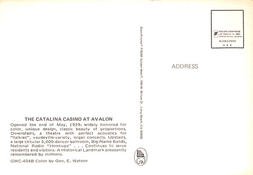 Catalina Island - California Grade: 1 Category: Continental Size Postcard, Approx 4 in x 6 in (10 cm x 15.25 cm) Product Size: Continental size: 4X6 inches (10.5 cm x 15 cm) Grading Scale: Grade 1 = Perfect co ... Read More