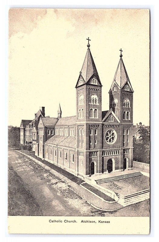 Condition: Unmailed, Showing Wear From Handling. Reasonable Offers Always Considered. This postcard features a beautiful image of the Catholic Church in Atchison, Kansas. The image is printed on high-quality cardb ... Read More