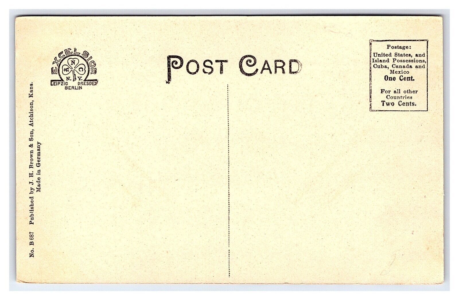 This postcard features a beautiful image of the Catholic Church in Atchison, Kansas. The image is printed on high-quality cardboard material with a divided back, and it measures 5.5 x 3.5 inches, making it a standard size postcard. The postcard is an original print from the early 1900s and has never been used or posted before. The postcard depicts the church in its original form, and it is perfect for collectors of topographical postcards or those interested in US States, Cities & Towns theme. The card is a single unit and comes as a set of one. It is not signed, and there are no custom bundles included. The postcard is an excellent addition to any collection and can be shipped anywhere worldwide.