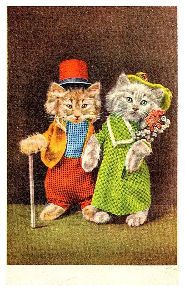 Cats dressed for evening , Anthropomorphic