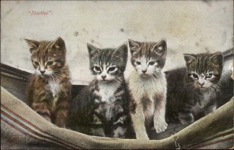 Cats Kittens in Bed STARTLED c1910 Postcard