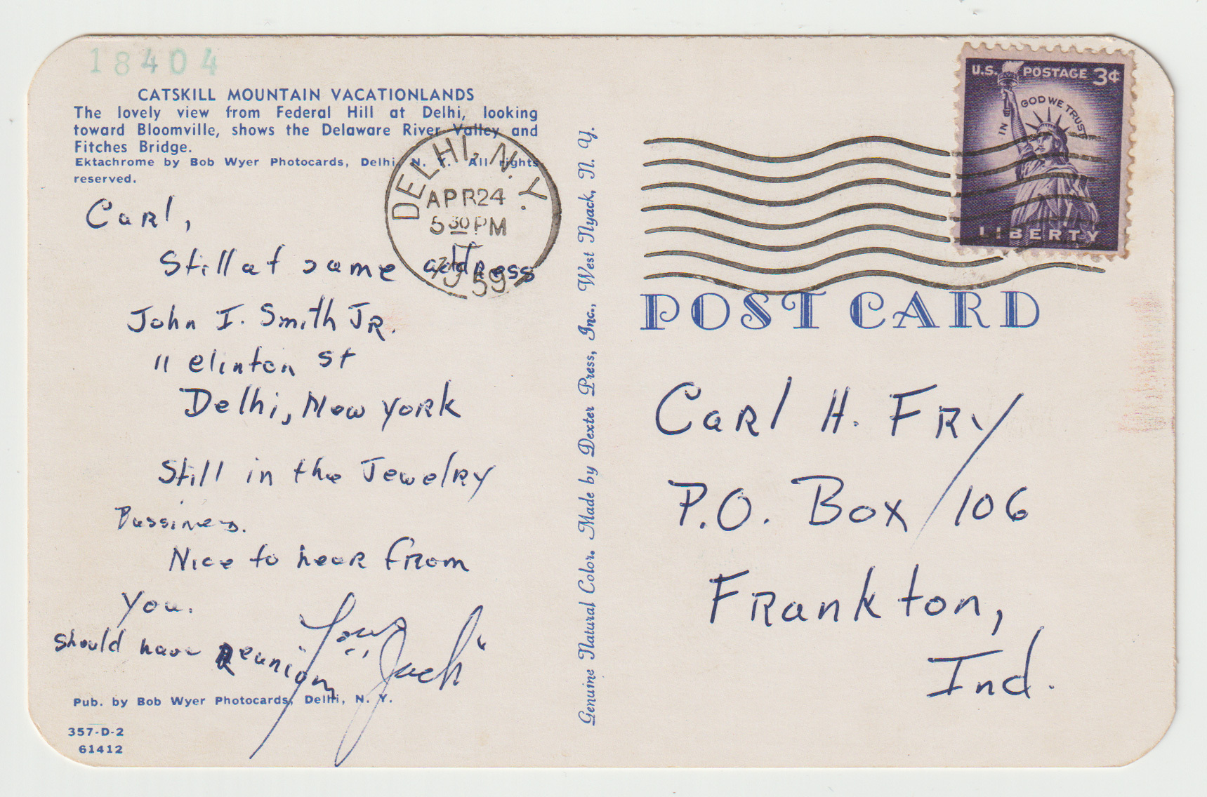 Postcards are shown from Actual Scan * In Very Good Condition * Post Marked April 24, 1959