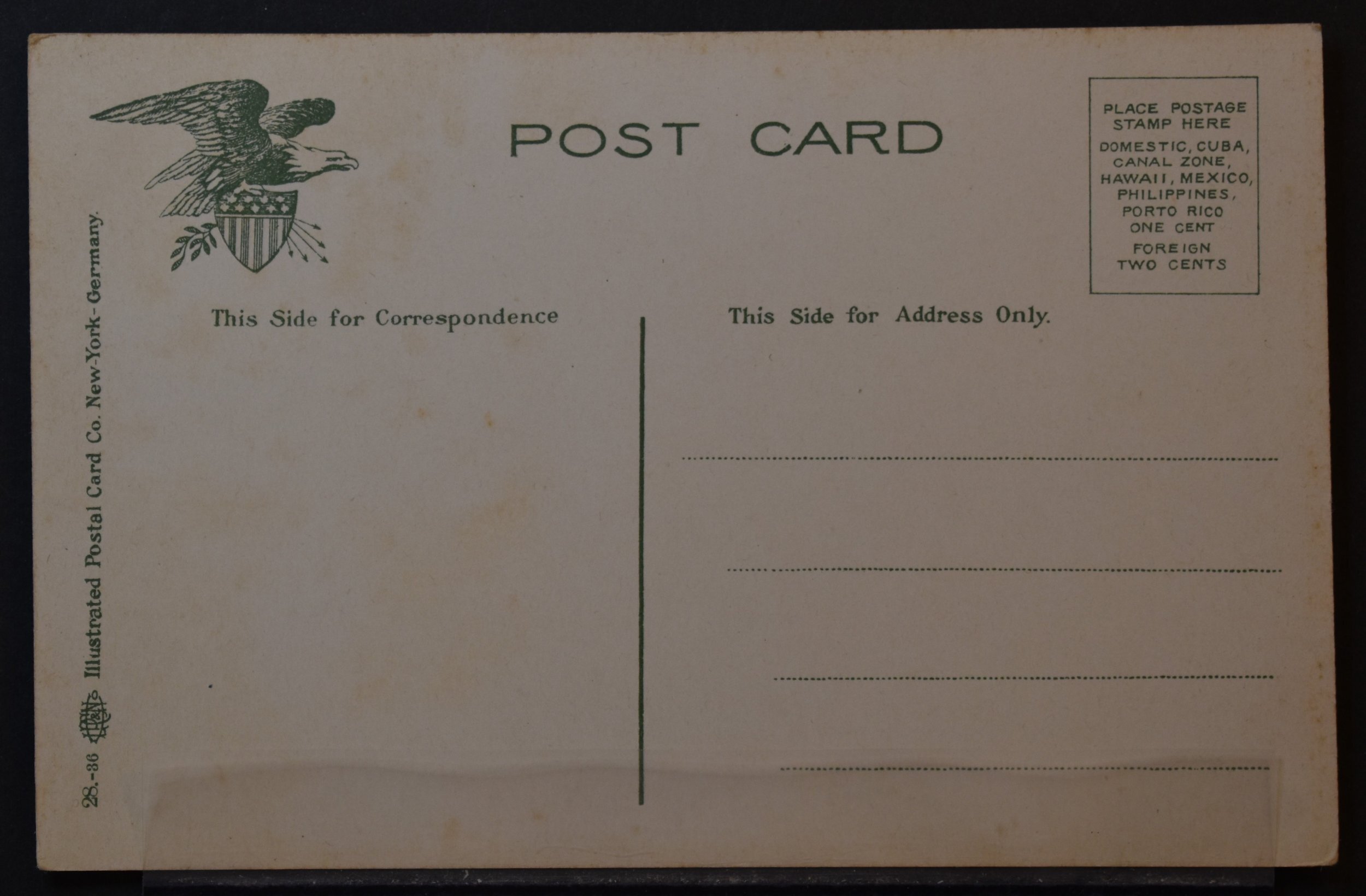 Standard size US postcard [0051]. See scans.My scans may show a small piece of plastic that is not part of the card on one edge, it is there to prop the card up as I get photos of it. I ship your card in between two pieces of custom cut thin cardboard to make sure you get your card just like it shows in the scans. See my feedback here and on that other site, lots of folks are very satisfied with how I get you your card.
