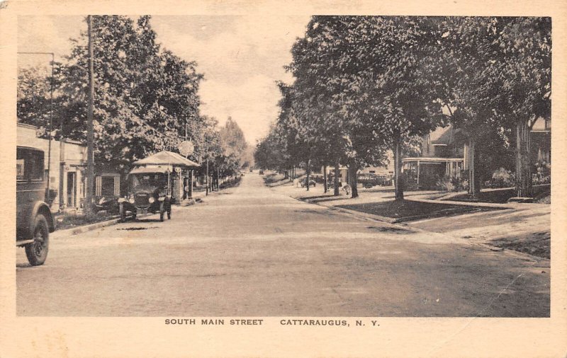 Cattaraugus New York South Main Street, B/W Lithograph Vintage Postcard U12003