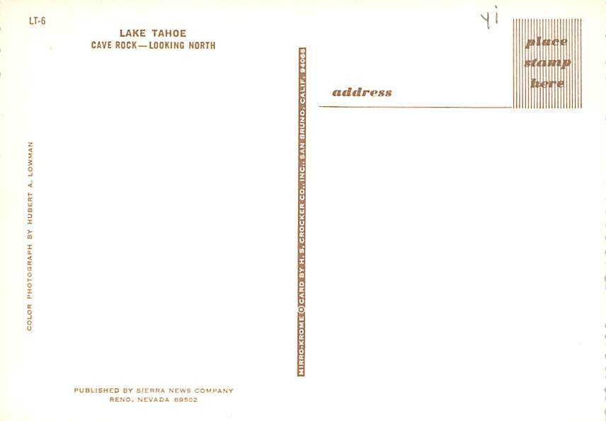 Cave Rock, Lake Tahoe Postcard - View Images Grade: 1 Size: C - Continental Size Postcard - approximately 4 inch X 6 inch (15 CM X 10.5 CM) Grading Scale: Grade 1 = Perfect corners Grade 2 = Very Minimal corner ... Read More