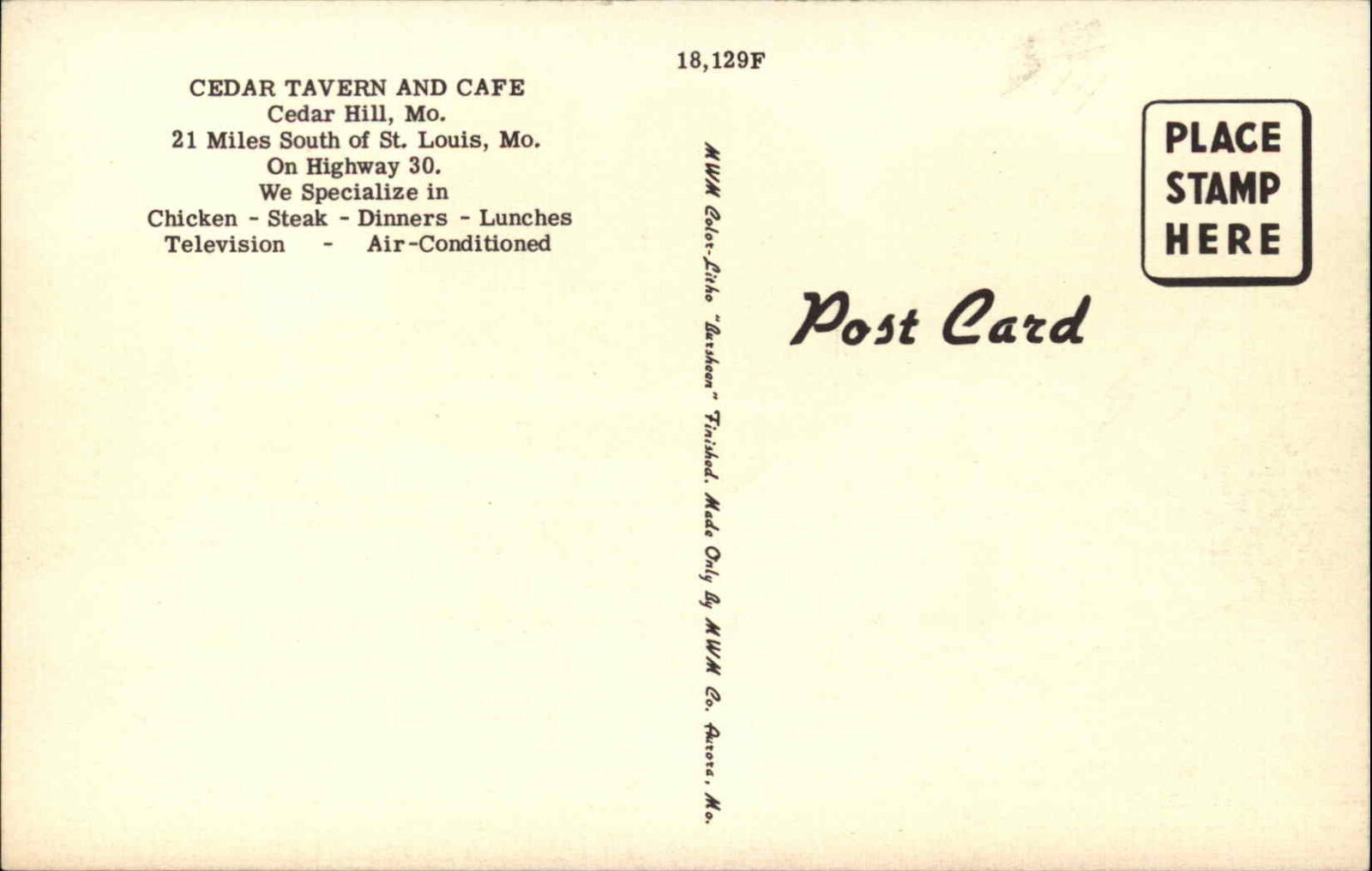Cedar Hill Missouri MO Cedar Taverns & Cafe Linen c1930s-40s Postcard