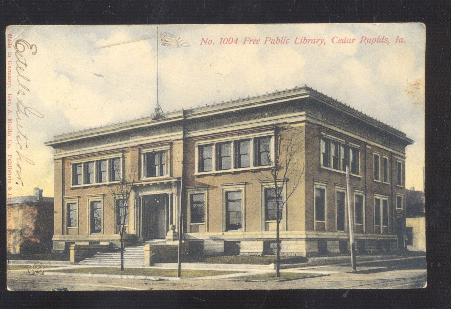 CEDAR RAPIDS IOWA FREE PUBLIC LIBRARY VINTAGE POSTCARD 1909