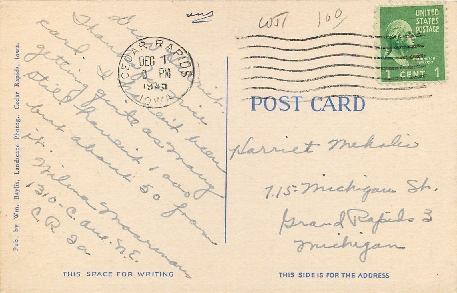 Refried Jeans Postcards Est. Online in 1999 Where History is a Memory You Can Hold in Your Hands... Postcard Size: Standard 3 1/2 by 5 1/2 (Unless Otherwise Noted Above) USING THE PHOTO MAGNIFIER, Please Examine Photos carefully, both front and back, for flaws. The back will sometimes reveal nicks or bends that you cannot see from the front. Double-Click the Image for Super Size Photo. Colored lines are from the scanner and are not on the postcard Please Contact Us If You Have Any Questions Your order is important to us. We generally ship within 24 hours, Sundays and Postal Holidays excepted. Postcards are sleeved and mailed in sturdy 16pt folded cardstock for ample protection from the Postal Service. COMBINED SHIPPING DISCOUNTS: Choose "Add to Cart" rather than "Buy Now" for discounts. Check Out only when finished. Shipping in US: Standard shipping is $1.50 for 1st Postcard, 20 Cents each additional. "Checking Out" and paying constitutes one order. IF this postcard is super important to you, consider upgrading to a tracked package. Cost is $4, and you may choose that option at checkout. Canada: $2.50 first postcard, each additional 20 cents. "Checking Out" and paying constitutes one order. We ship in first class envelopes. If you purchase multiple cards, your order may be shipped in multiple envelopes. International: 4.00 first postcard, each additonal 20 cents."Checking Out" and paying constitutes one order. We ship in first class envelopes. If you purchase multiple cards, your order may be shipped in multiple envelopes. We are not available to answer messages on Sunday, the Lord's Day 221711