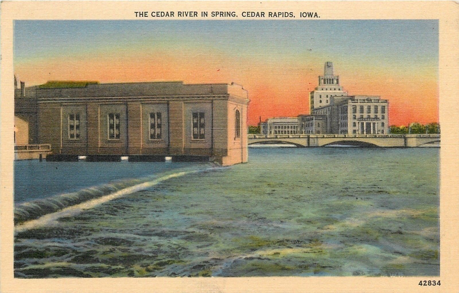 Cedar Rapids Iowa~Cedar River in Spring~Power House~1945 Postcard