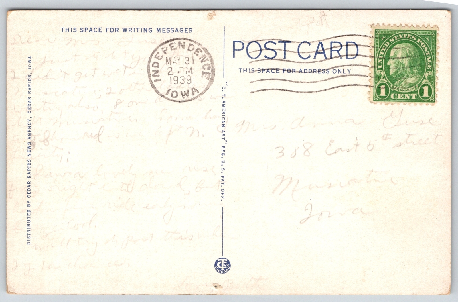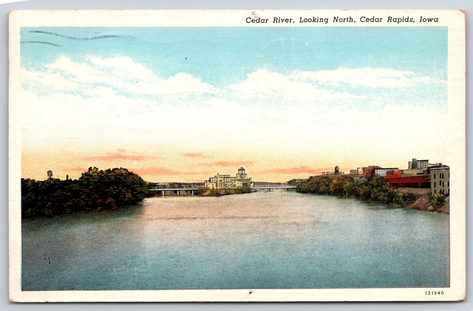 Cedar Rapids Iowa~Cedar River North View~PM 1939~Vintage Linen Postcard