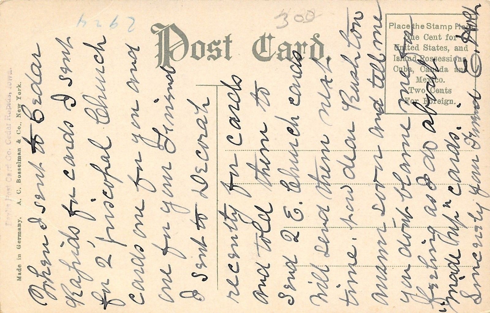 Refried Jeans Postcards Est. Online in 1999 Where History is a Memory You Can Hold in Your Hands... Postcard Size: Standard 3 1/2 by 5 1/2 (Unless Otherwise Noted Above) USING THE PHOTO MAGNIFIER, Please Examine Photos carefully, both front and back, for flaws. The back will sometimes reveal nicks or bends that you cannot see from the front. Double-Click the Image for Super Size Photo. Colored lines are from the scanner and are not on the postcard Please Contact Us If You Have Any Questions Your order is important to us. We generally ship within 24 hours, Sundays and Postal Holidays excepted. Postcards are sleeved and mailed in sturdy 16pt folded cardstock for ample protection from the Postal Service. COMBINED SHIPPING DISCOUNTS: Choose "Add to Cart" rather than "Buy Now" for discounts. Check Out only when finished. Shipping in US: Standard shipping is $1.50 for 1st Postcard, 20 Cents each additional. "Checking Out" and paying constitutes one order. IF this postcard is super important to you, consider upgrading to a tracked package. Cost is $4, and you may choose that option at checkout. Canada: $2.50 first postcard, each additional 20 cents. "Checking Out" and paying constitutes one order. We ship in first class envelopes. If you purchase multiple cards, your order may be shipped in multiple envelopes. International: 4.00 first postcard, each additonal 20 cents."Checking Out" and paying constitutes one order. We ship in first class envelopes. If you purchase multiple cards, your order may be shipped in multiple envelopes. We are not available to answer messages on Sunday, the Lord's Day 221711