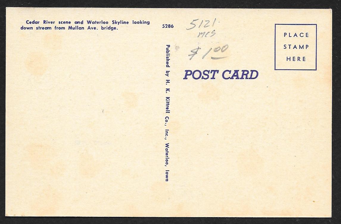 Cedar River & Waterloo Skyline Waterloo Iowa Unused c1940s