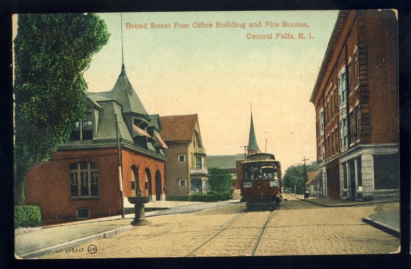 Central Falls, Rhode Island/RI Postcard, Post Office & Fire Station, Trolley