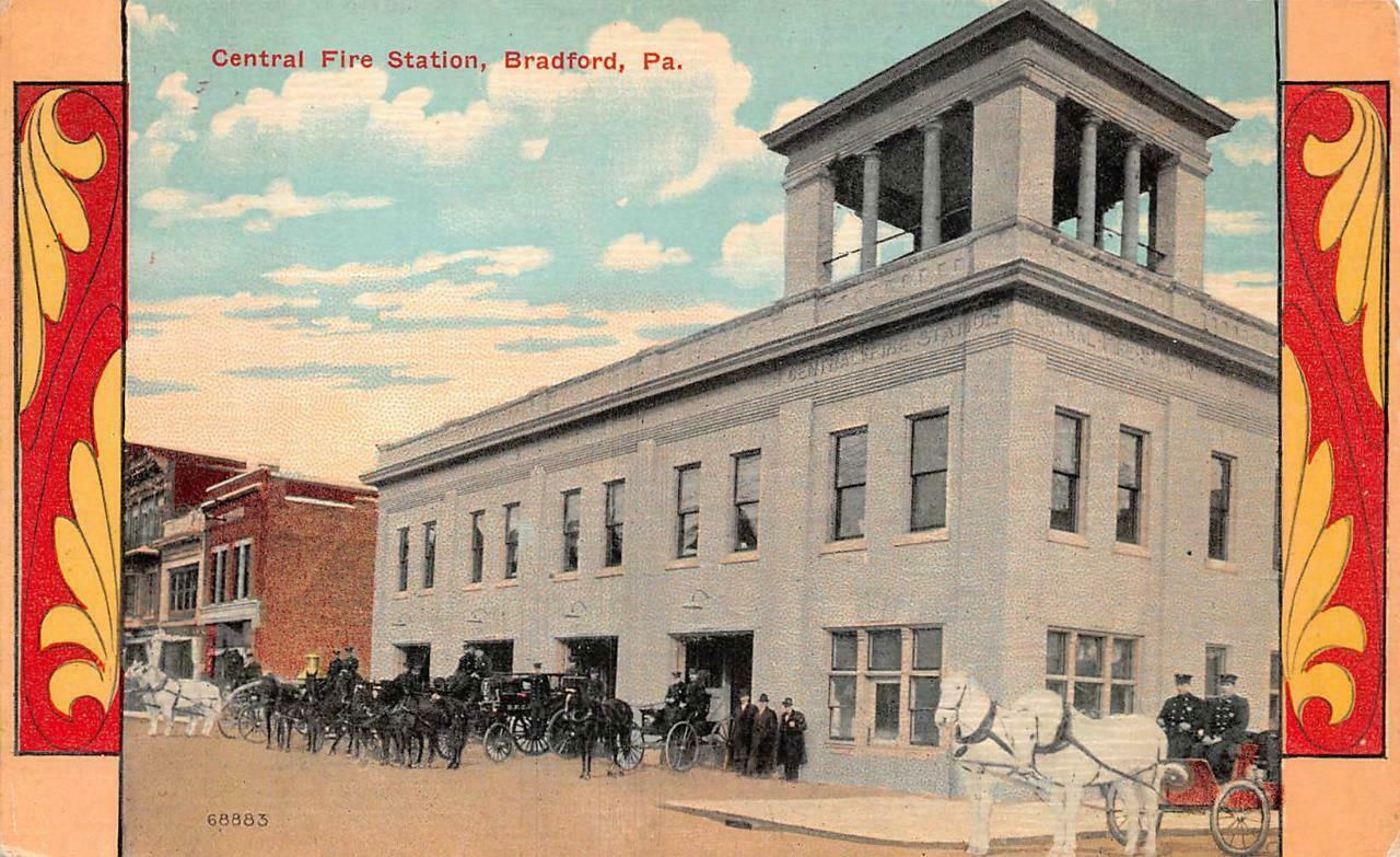 CENTRAL FIRE STATION BRADFORD PENNSYLVANIA POSTCARD (c. 1910)