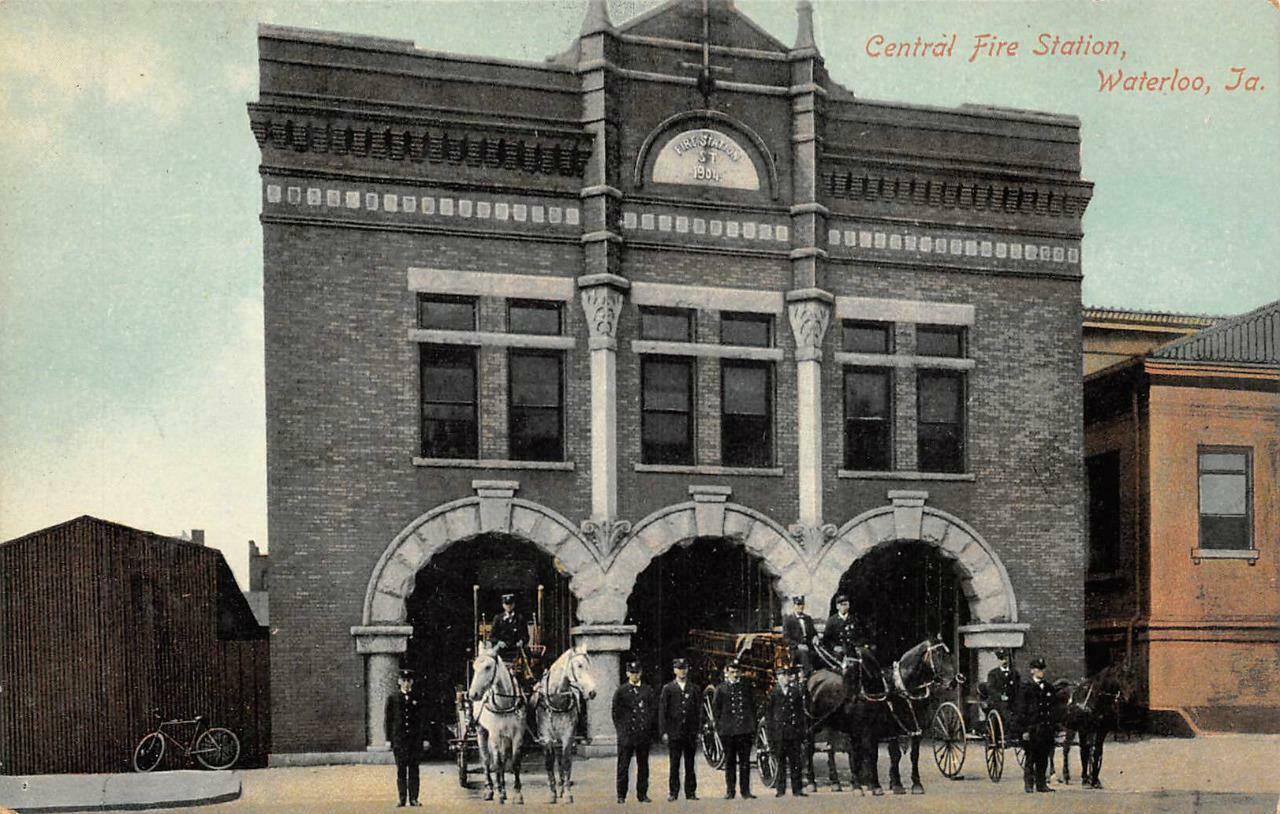 CENTRAL FIRE STATION WATERLOO IOWA POSTCARD (c. 1910) !!