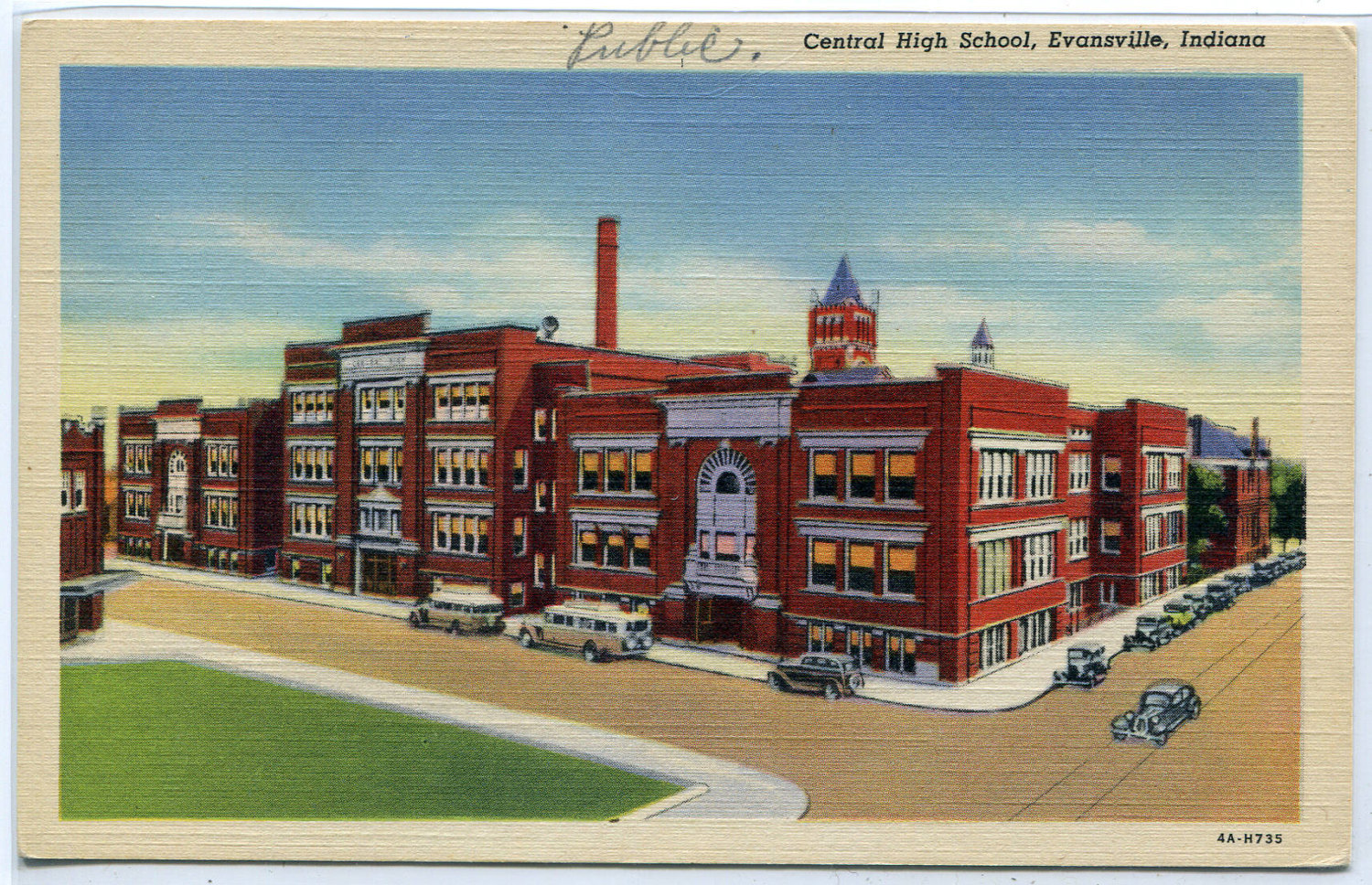 Description: Central High School Evansville Indiana linen postcardType: linen