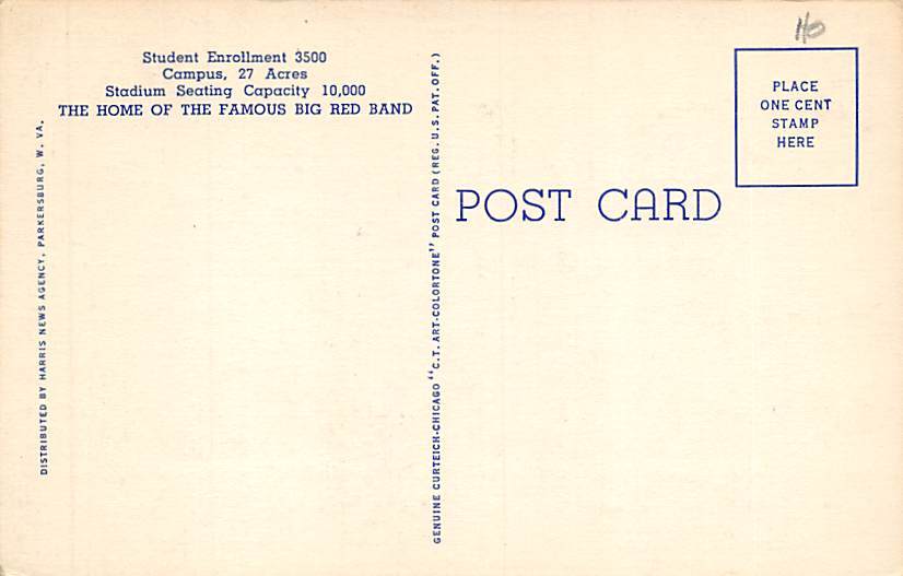 Central Junior-Senior High School, Stadium, Parkersburg, West Virginia WV Postcard - Unused Grade: 2 Size: R - Regular size: Approx 3 1/2 X 5 1/2 inch (9 cm X 14 cm) Grading Scale: Grade 1 = Perfect corners Gr ... Read More