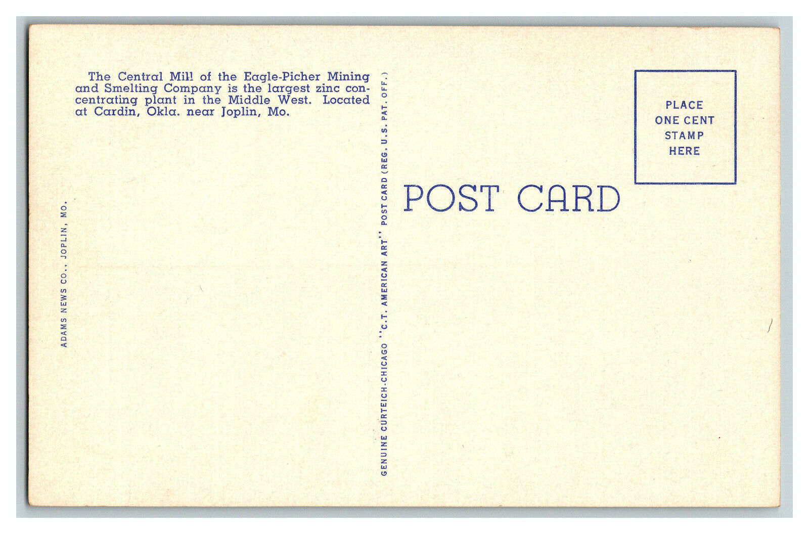 Check Out My Store For Clearance Items Central Mill Eagle-Picher Mining Co. Near Joplin, Mo. MissouriVintage Standard View PostcardReasonable Offers Always ConsideredPostcard Enclosed in Clear SleevePlaced Between 2 Pieces of CardboardShipped USPS First Class MailNon Machinable-Marked Do Not BendCombined Shipping AvailableQuestions Welcomed
