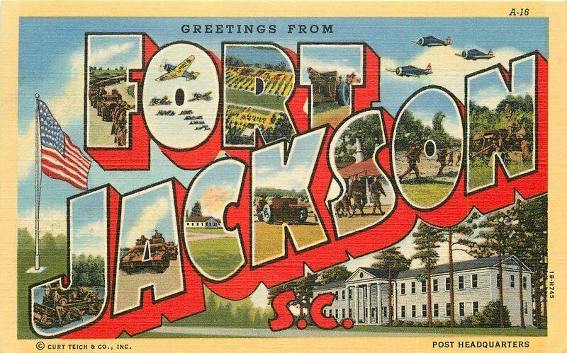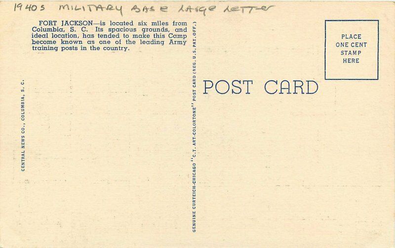 Central News Fort Jackson 1940s Military Base large Letters Postcard Teich 5975