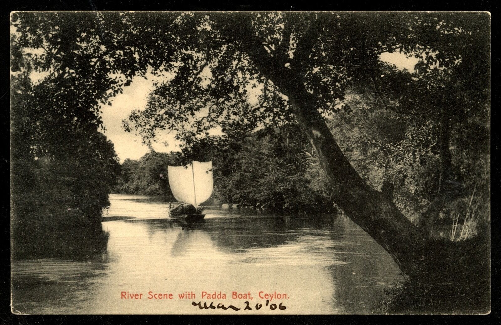 Ceylon Ethnic Vintage River scene with padda boat