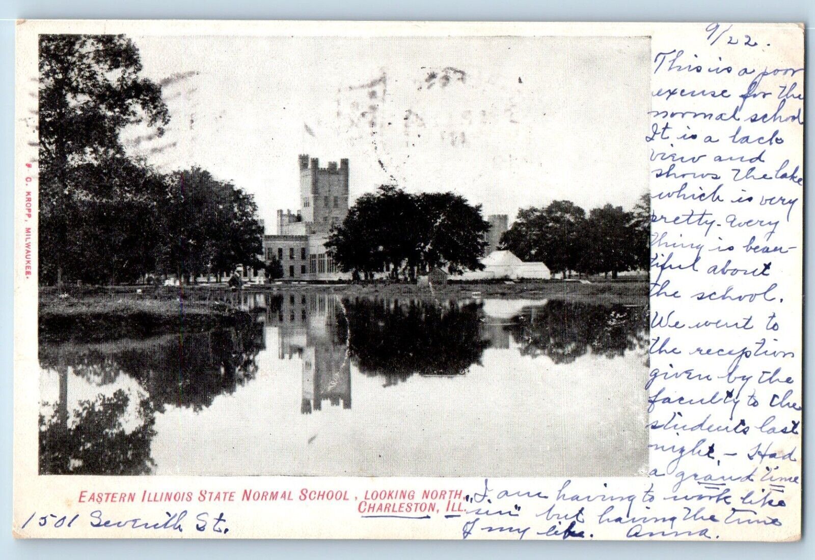 Charleston Illinois IL Postcard Eastern State Normal School Looking North 1907