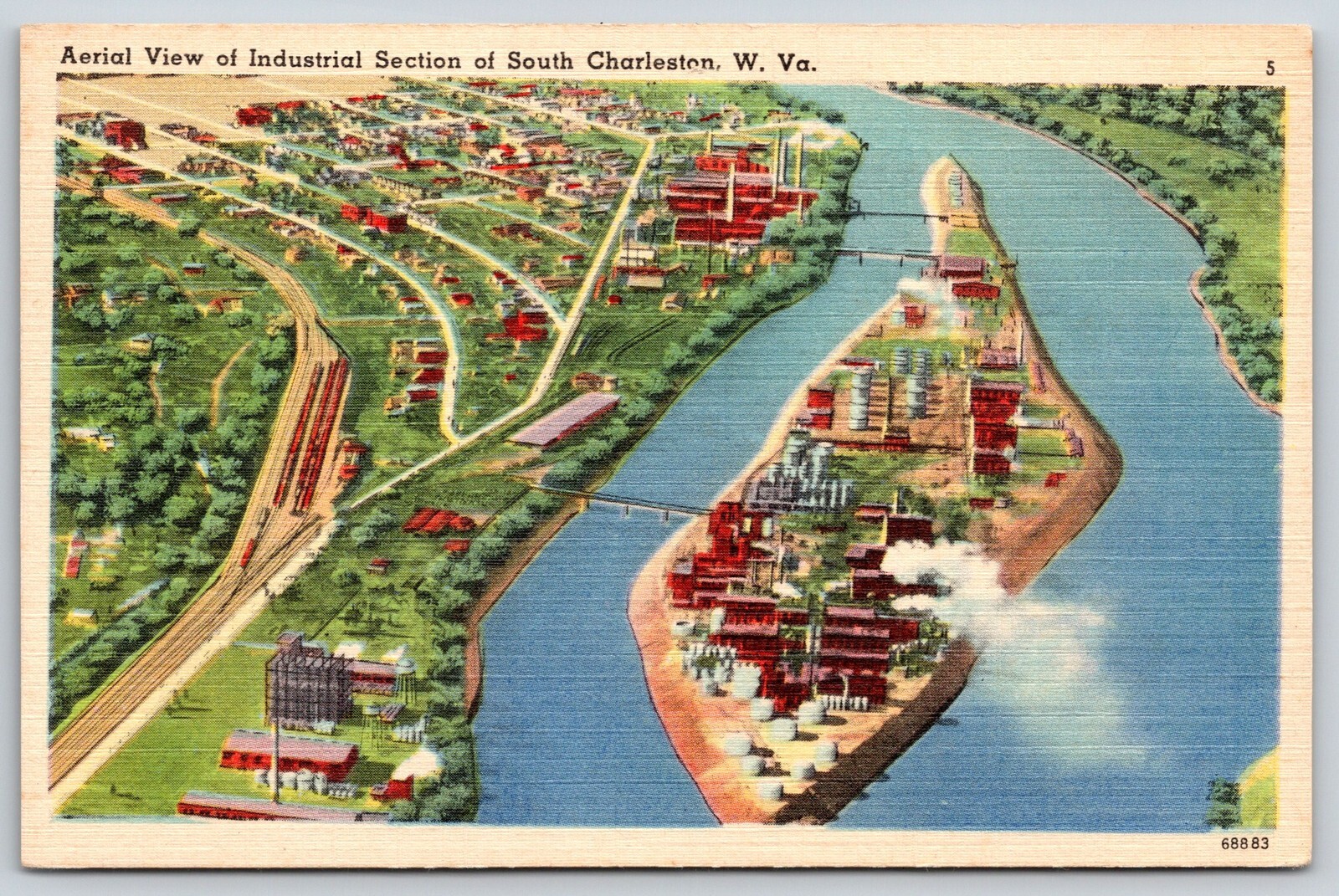 Charleston West Virginia~Industrial Section~Factory~River~1940s Linen Postcard