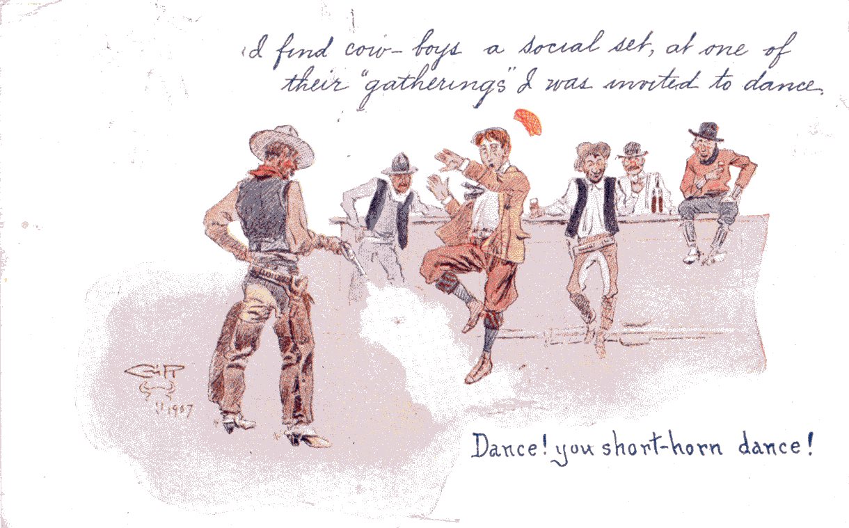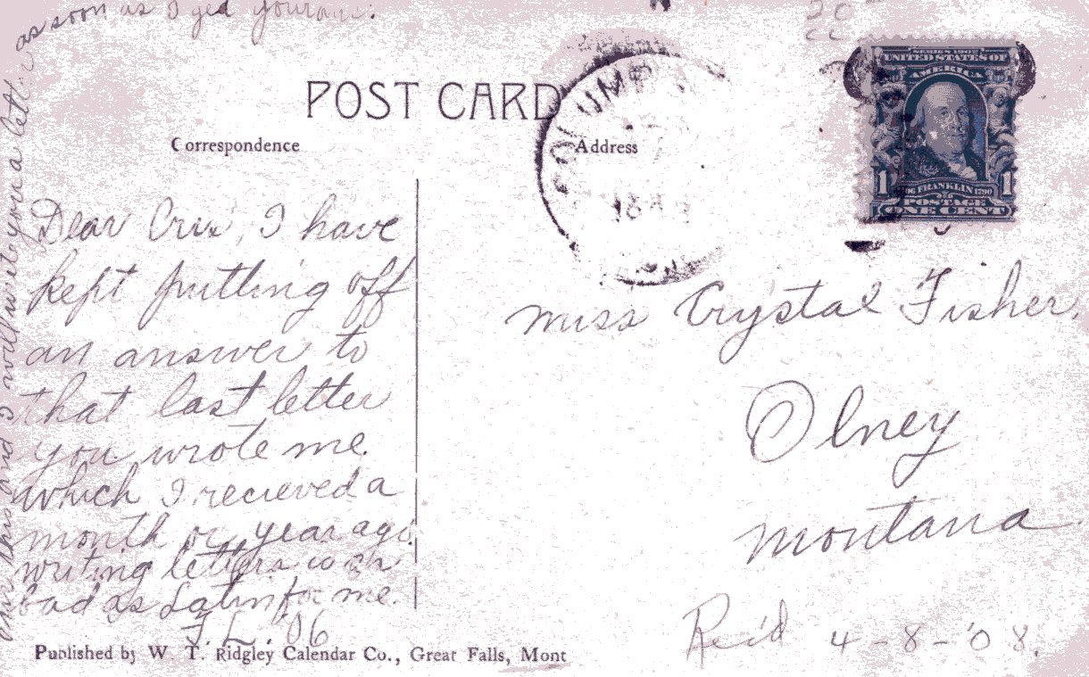 Divided Back, dated 1908An early Charlie Russell postcard produced by the Ridgely Press, Great Falls, Montana, under the supervision of Russell during his life. These cards are the first series that were produced and are hard to find and very collectable.