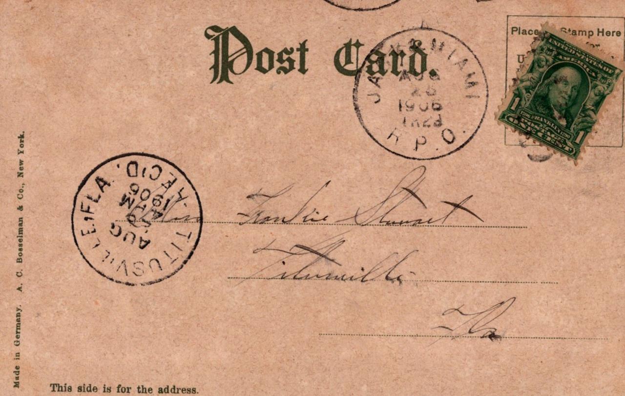 Charlotte street st. Augustine florida rpo postcard 1906 charlotte street st. Augustine florida rpo postcard 1906 click images to enlarge description very attractive and historic postcard. Sent 1907, undivided back with light corner bumping & some toning. Fine condition. Base shipping is $2.00 domestic and $3.00 international. Purchases at/over $49.95 must be insured. All items/orders selling for over $49.95 will be based upon final sale price. Seller will combine multiple purchases. Please wait for an invoice from seller before making payment. Please take a look at my other listings. There is a clickable link to view a larger picture. The scans accurately reflect the condition yet if you have any questions please feel free to ask. Check out the store listings! Pictures sell!Auctiva offers free image hosting and editing.300+ listing templates!Auctiva gets you noticed!The complete Hip selling solution.Track page views withauctiva's counter