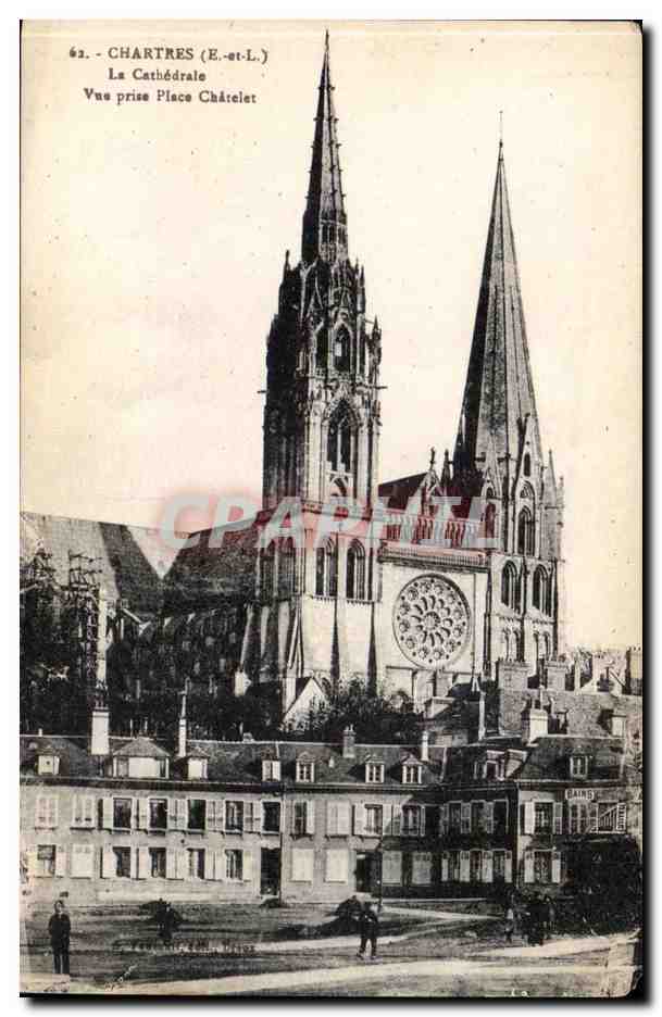 Chartres Cathedral Old Postcard The View taken place Chatelet
