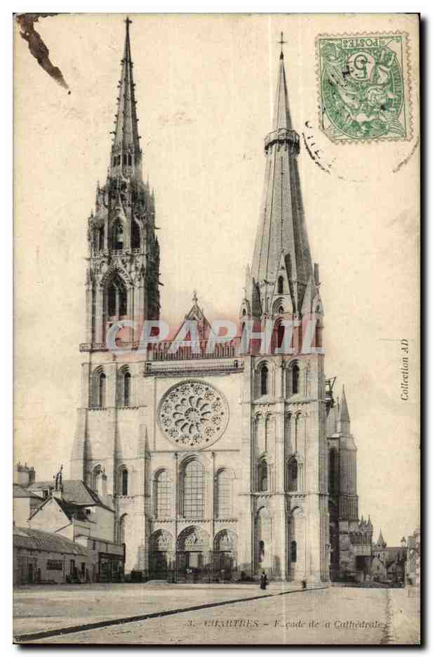 Chartres Old Postcard Facade of the cathedral