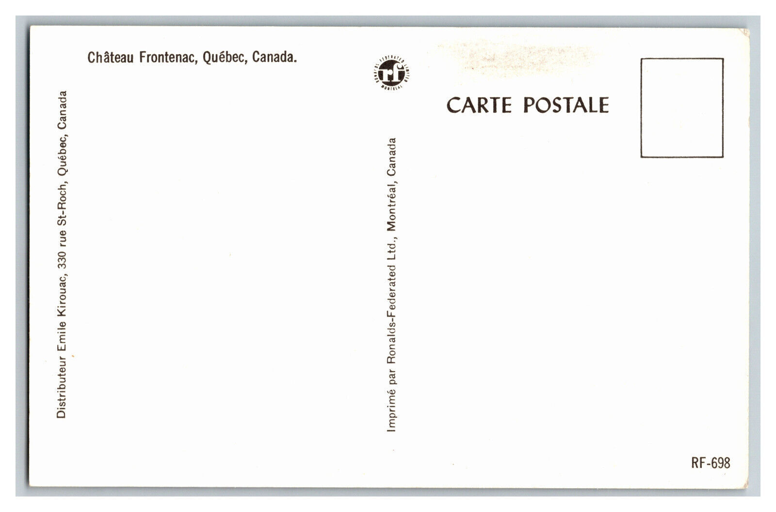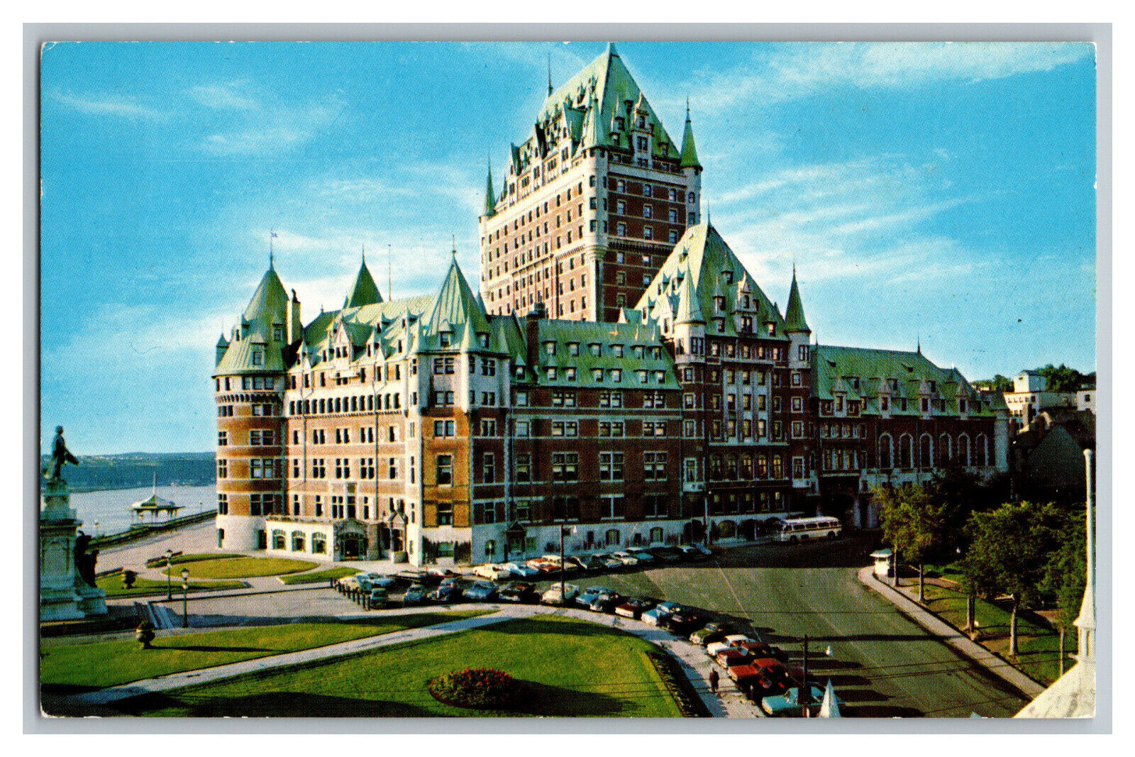 Chateau Frontenac Quebec Canada Postcard Old Cars