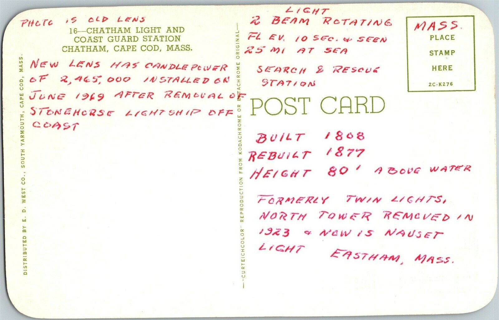 Chatham Light and Coast Guard Station Chatham Cape Cod MA Vintage Postcard E77