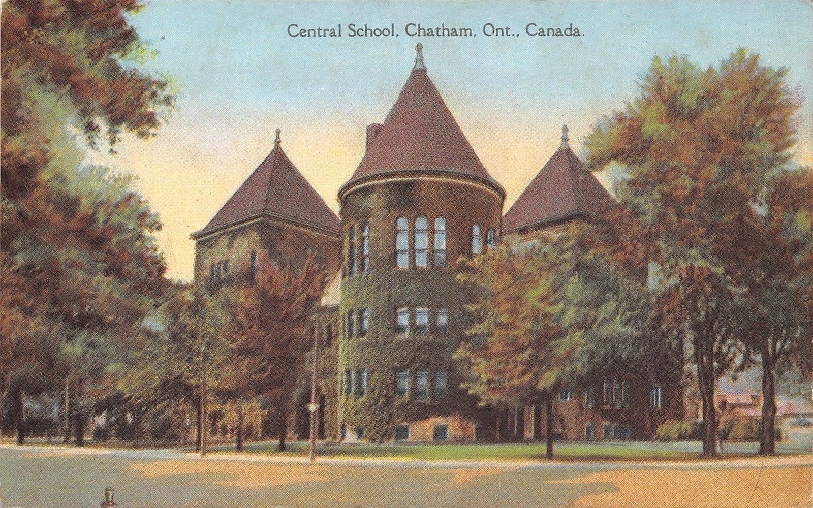 Chatham Ontario~Central School~Ivy Covered Turret~1910 Postcard