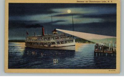 Chautauqua Lake NY Ship at Night Postcard