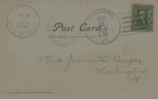 Chelsea Vermont Panoramic View Business Section 1908 Postcard UsedCondition: Wear to corners and edges; ink leaks on the front. Please see photos. Publisher: Bixby Store.Size: Standard 3 1/2" x 5 1/2"Ships fast.