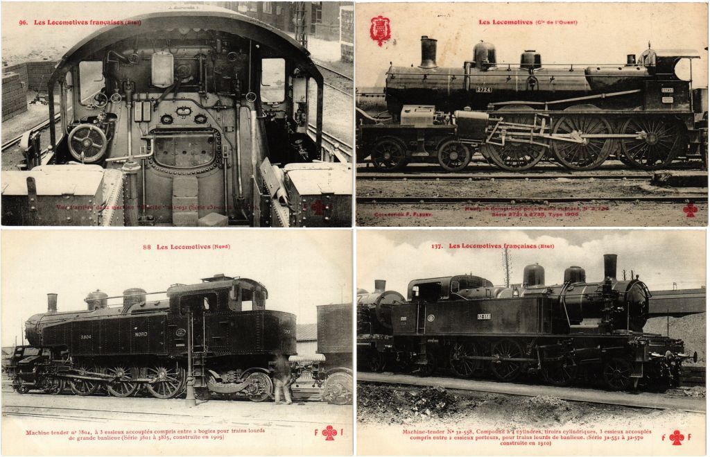 Chemin de fer francaise train railway locomotives 39 cpa pre 1950 all f.F. Veuillez compter 10 EUR pour le frais du port. MERCI! Please add EURO 10 for shipping worldwide. THANK YOU!